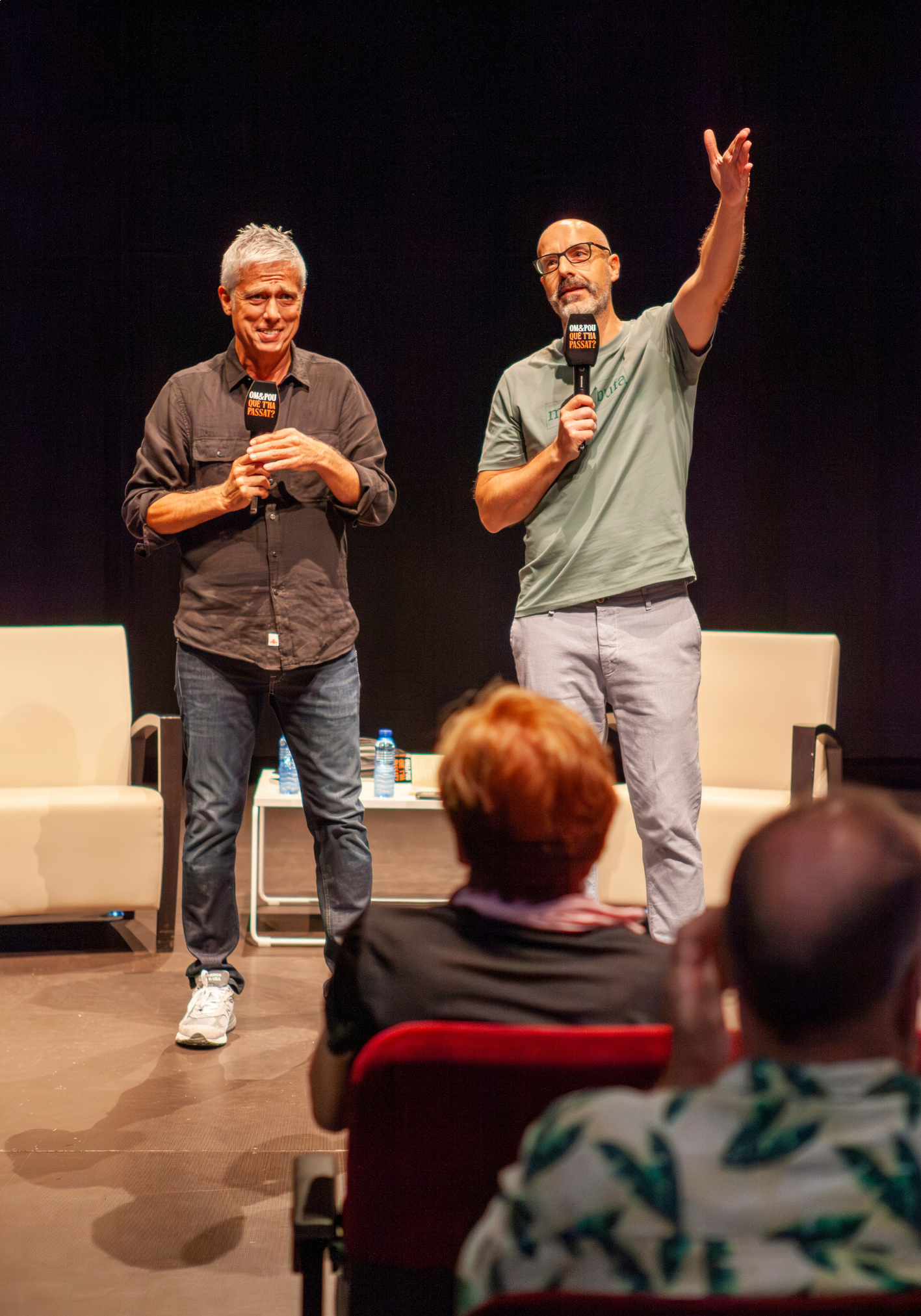 Joan Maria Pou i Albert Om deixen enrere els filtres de la ràdio i la televisió per trobar-se cara a cara, sense guió ni artificis, en una conversa tan honesta com divertida. Davant d’un públic amb ganes de riure, escoltar i passar-s’ho bé, el Pou i l’Om —el Joan Maria i l’Albert— comparteixen experiències, anècdotes i vivències recents amb la complicitat que els caracteritza.
